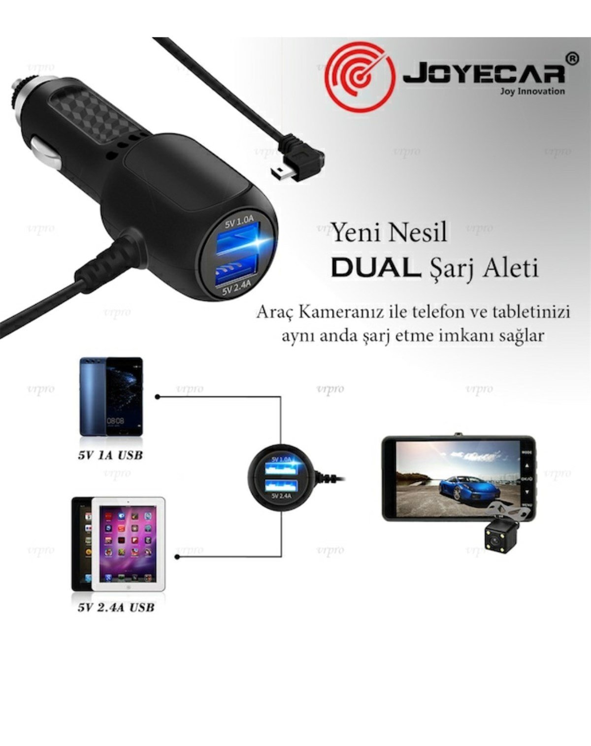 Dual Çift Girişli Her Modelle Uyumlu 3.5m Araç Kamera Şarj Aleti